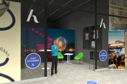 Suunnittelimme Hyvinkään brändi-ilmeeseen sopivan tilan, ohjauksen tilaan ja animoidut mainokset Willan näytöille.